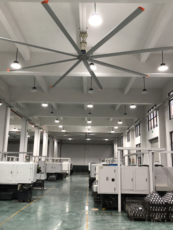 我公司生產的大型工業吊扇直接懸掛在廠房屋梁下,風力柔和,能加快車間空氣流通,有效降低車間內溫度,改善車間空氣環境質量,有利于員工的身體健康。